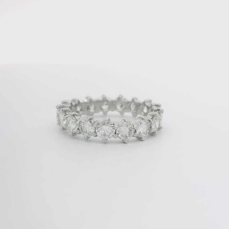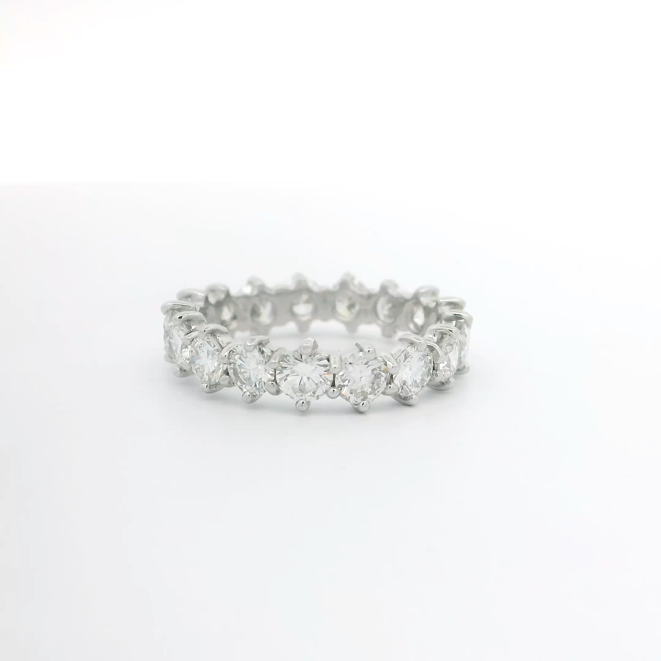 This platinum diamond eternity band features 17 expertly set diamonds totaling 3.06 carats. With H color and VS2-SI1 clarity, each stone delivers exceptional brilliance and clarity. The continuous circle of diamonds symbolizes enduring elegance, making this band a timeless addition to any jewelry collection.