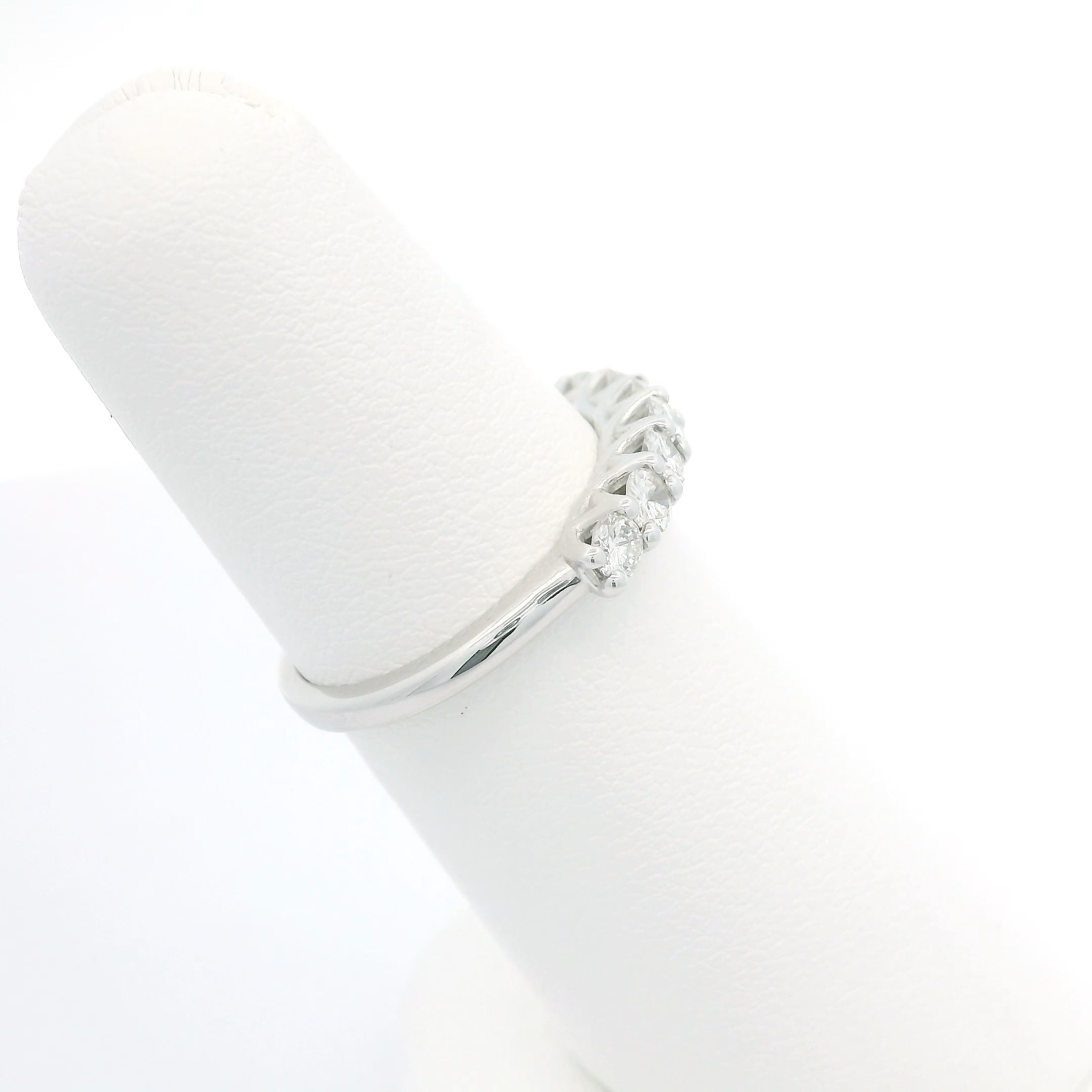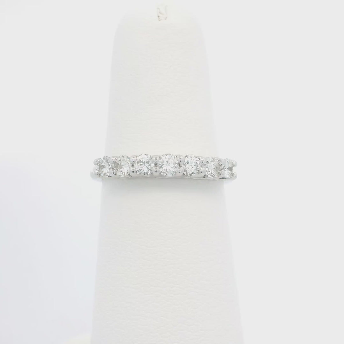 Elegant and timeless, this diamond band features seven brilliant diamonds totaling 0.49 carats, expertly set in a secure shared prong setting. Crafted from lustrous 14k white gold, this piece offers sophisticated sparkle perfect for stacking or wearing solo. The refined design complements any jewelry collection with understated luxury and enduring style.