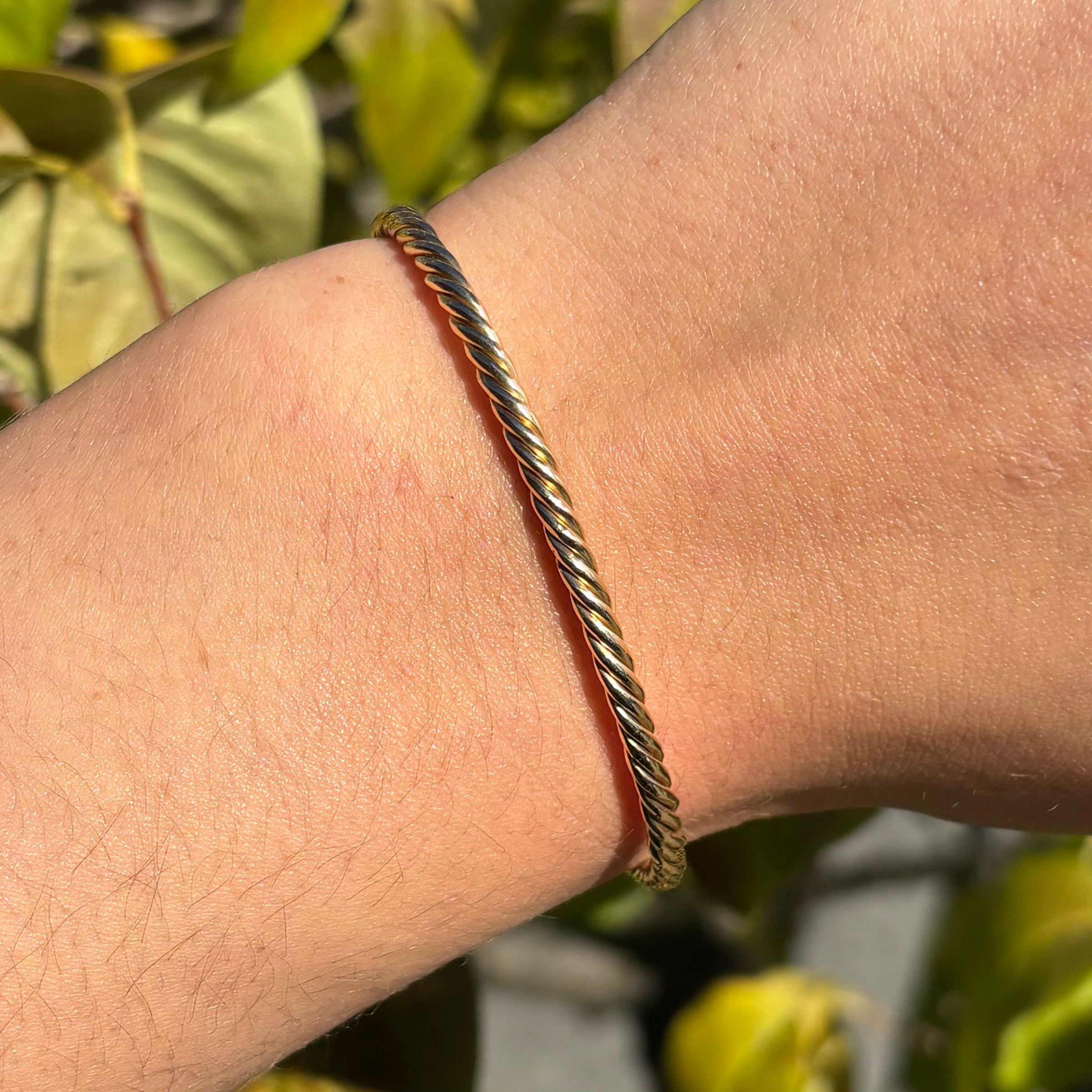 Experience luxury and elegance with our Gold Open Bangle. Crafted from solid 18k yellow gold, this twisted cuff bracelet is 3.25mm wide and weighs 15.2 grams, making it the perfect statement piece for any occasion. Elevate your style and embrace the beauty of fine jewelry.