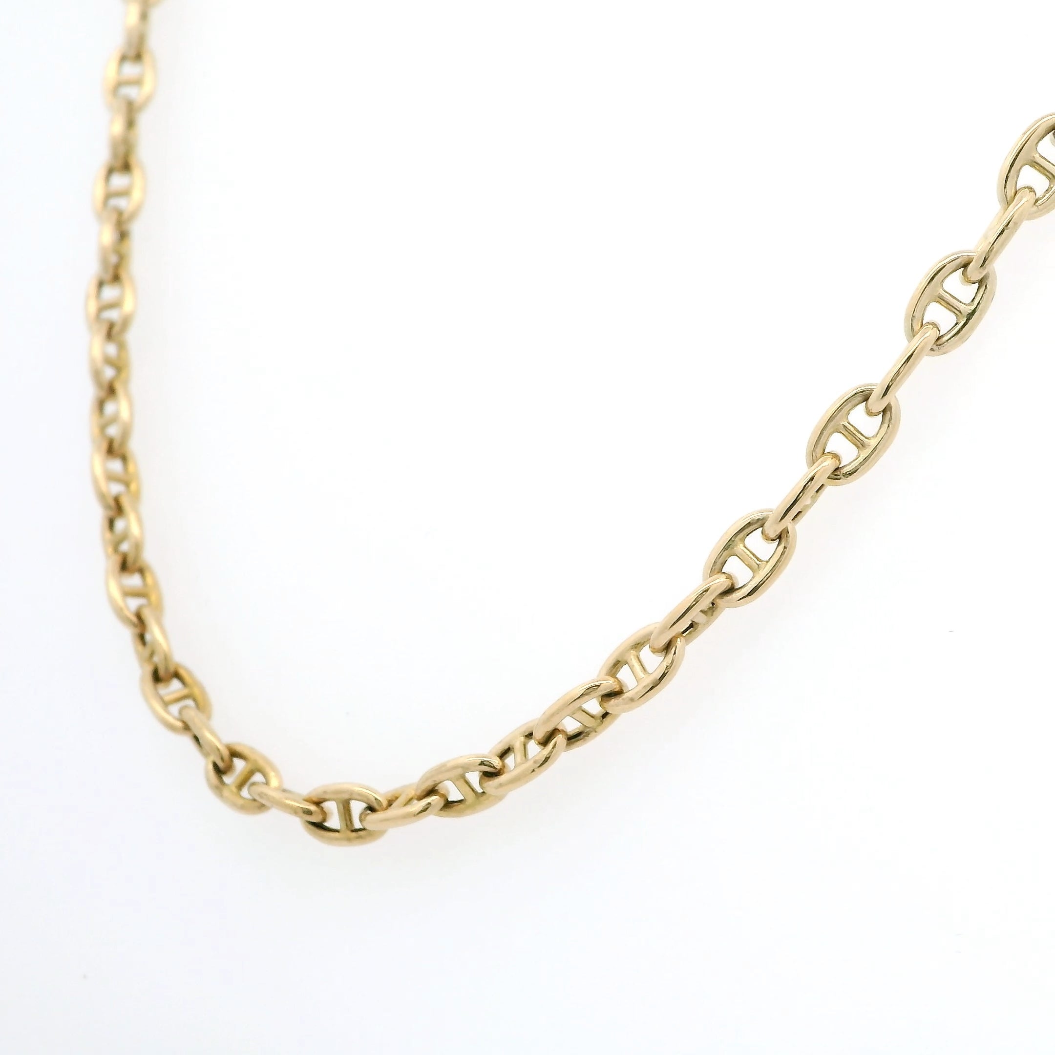 Crafted in 14k yellow gold, this mariner chain showcases the enduring appeal of a classic link design. At 24 inches with a 3.5mm width, it strikes an ideal balance between presence and wearability. The hollow construction offers a lighter feel while maintaining the sophisticated look of solid gold jewelry. This versatile piece complements any collection with refined elegance.