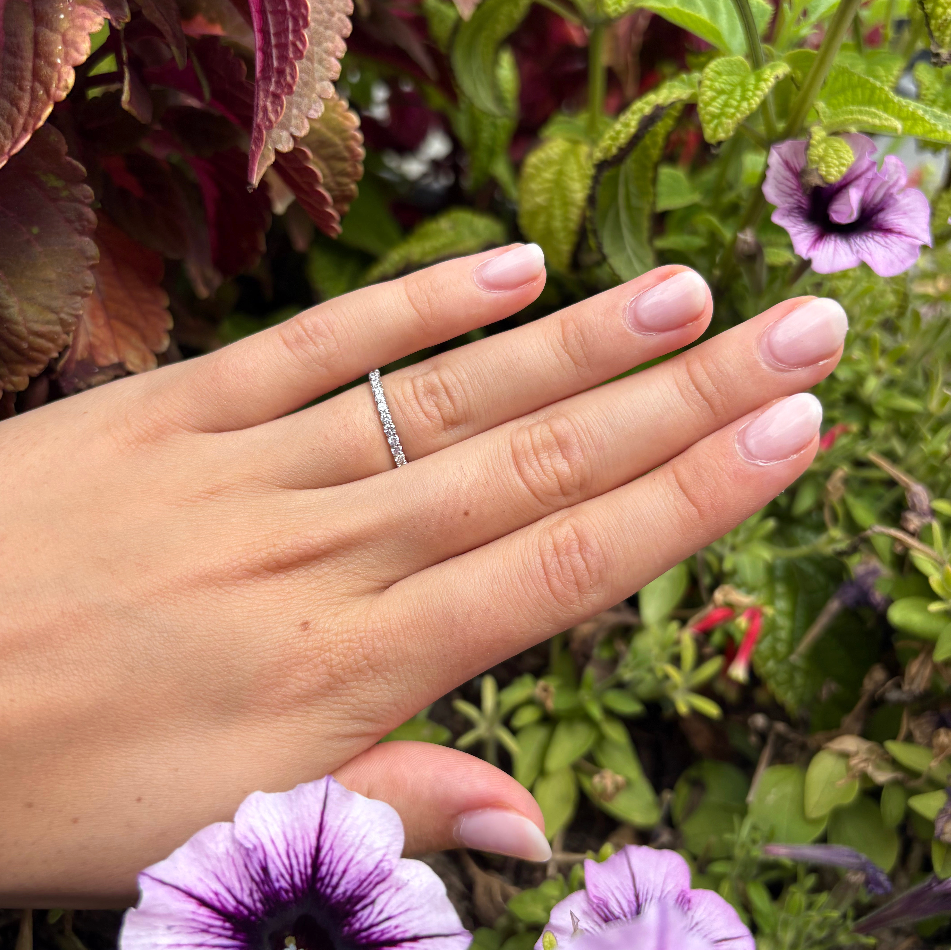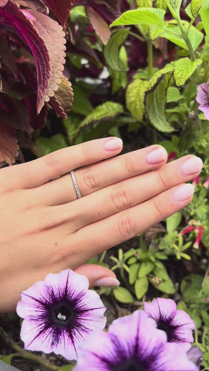 This handmade platinum band measures 2mm in width and is adorned with 20 diamonds totaling 0.40 carats. Expertly crafted by hand, it offers a refined and elegant design that highlights the brilliance of each diamond, perfect for those seeking a subtle yet sophisticated accessory.