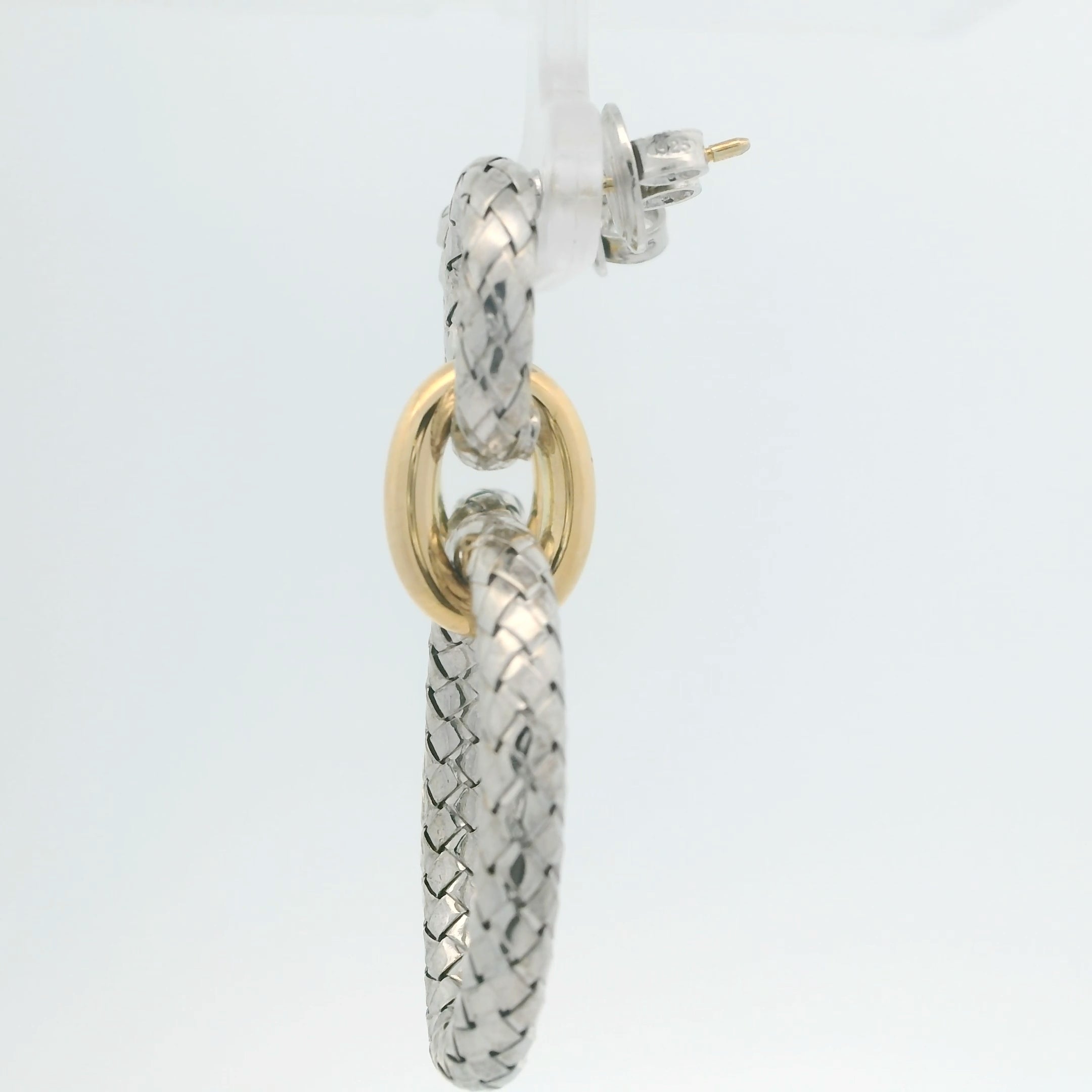 Elevate your everyday elegance with these exquisite two-tone drop circle earrings, handcrafted in Italy by Designer Alisa. Featuring a harmonious blend of lustrous sterling silver with 18k yellow gold accents, these earrings showcase a refined round top and graceful oval dangle design. The Traversa collection exemplifies Italian craftsmanship at its finest, combining timeless sophistication with contemporary style.