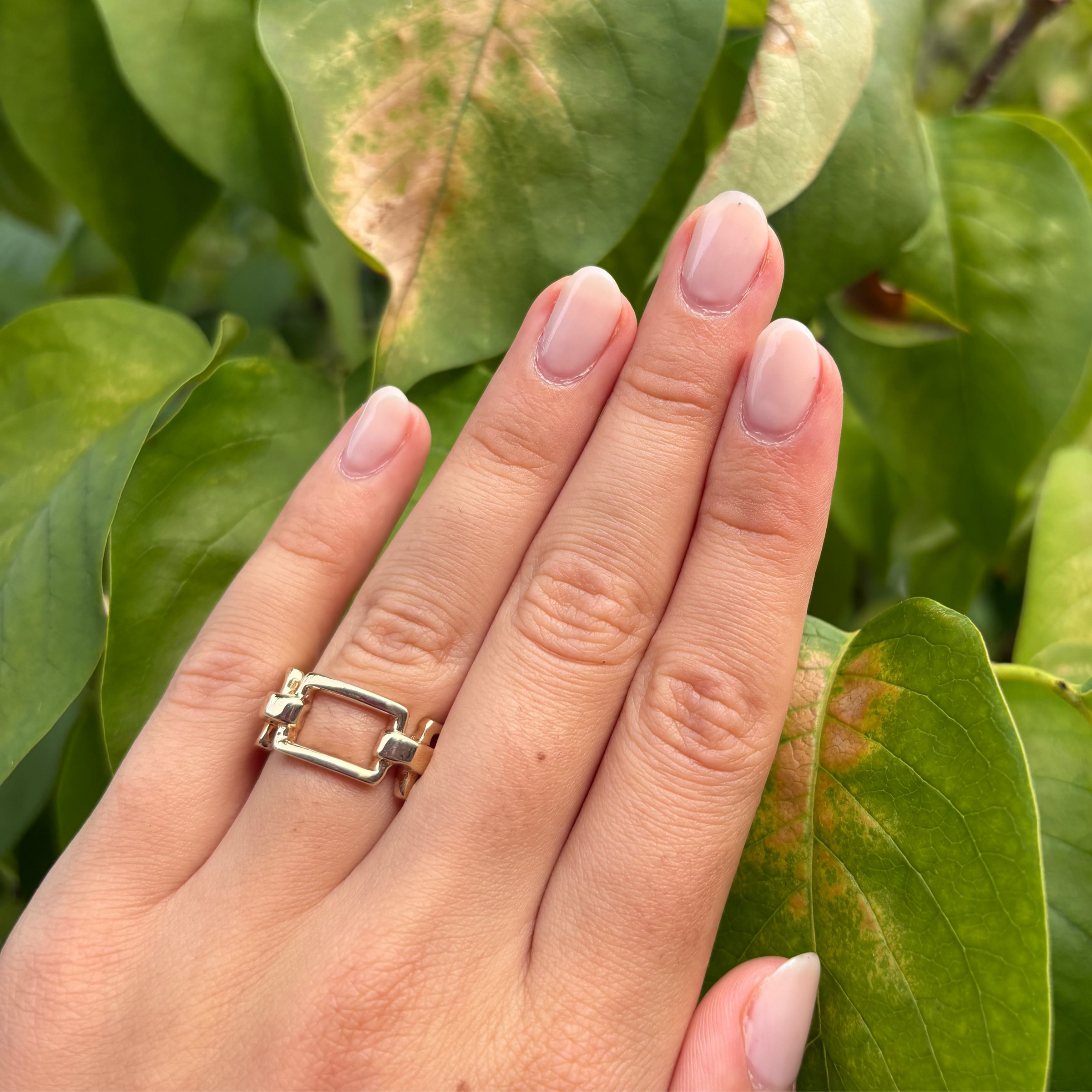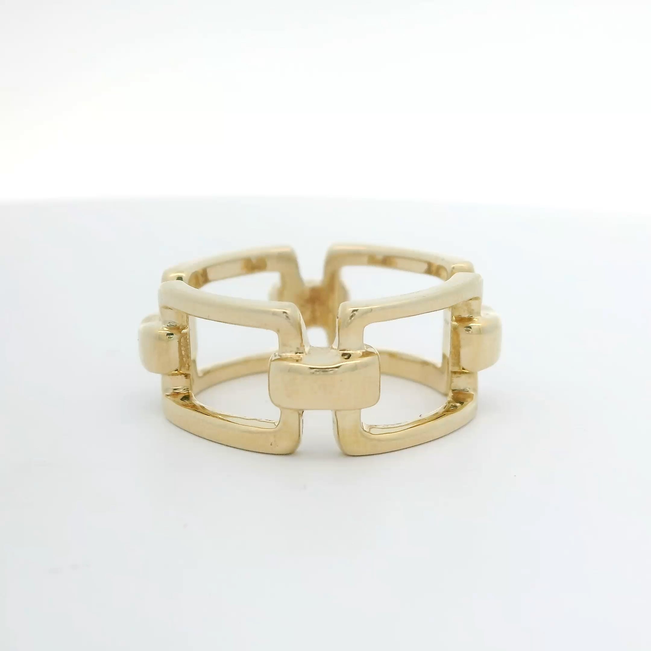 This elegant open link style ring is crafted from 14k yellow gold and weighs 7.9 grams, offering a refined balance of durability and sophistication. Its timeless design makes it a versatile accessory suitable for both everyday wear and special occasions.
