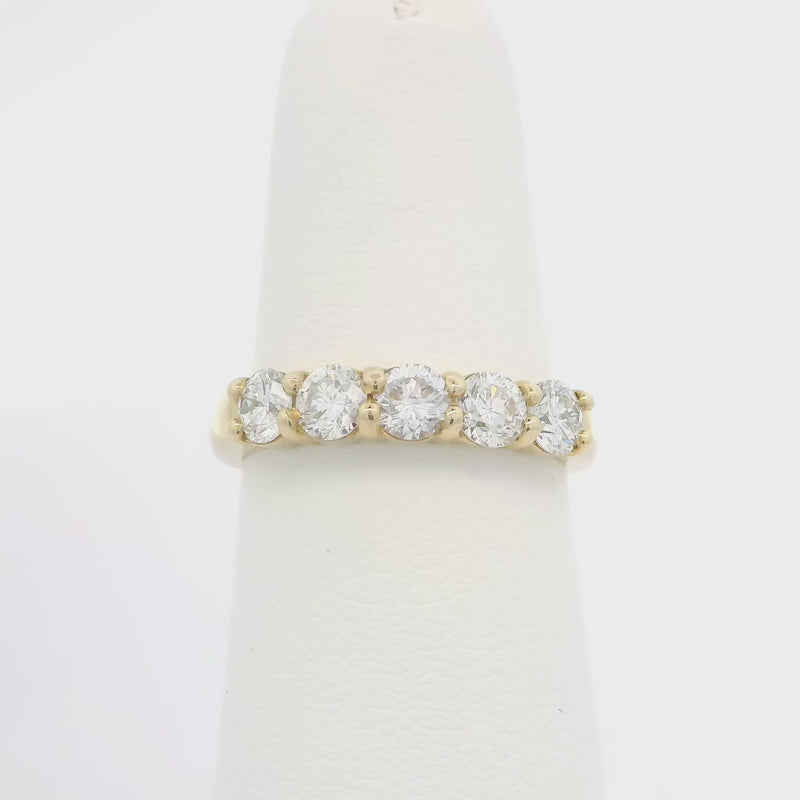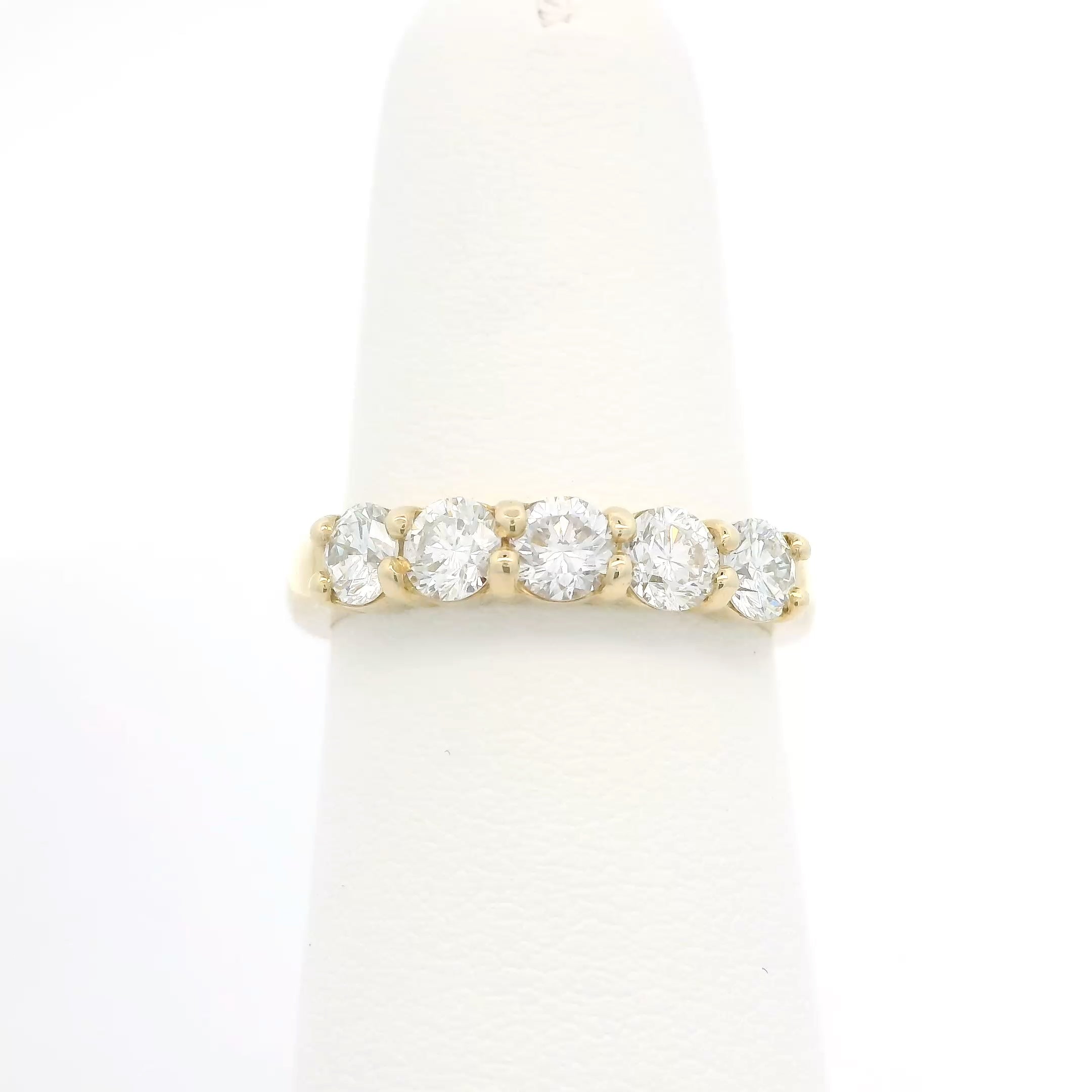 This elegant diamond band is crafted from 14k yellow gold and features five sparkling diamonds totaling 1.00 carat. Each diamond is carefully selected for its G/H color and SI1 clarity, ensuring a brilliant and refined appearance. Perfect for adding timeless sophistication to any jewelry collection.