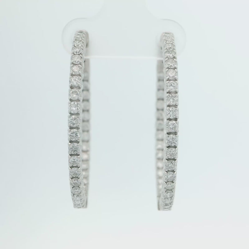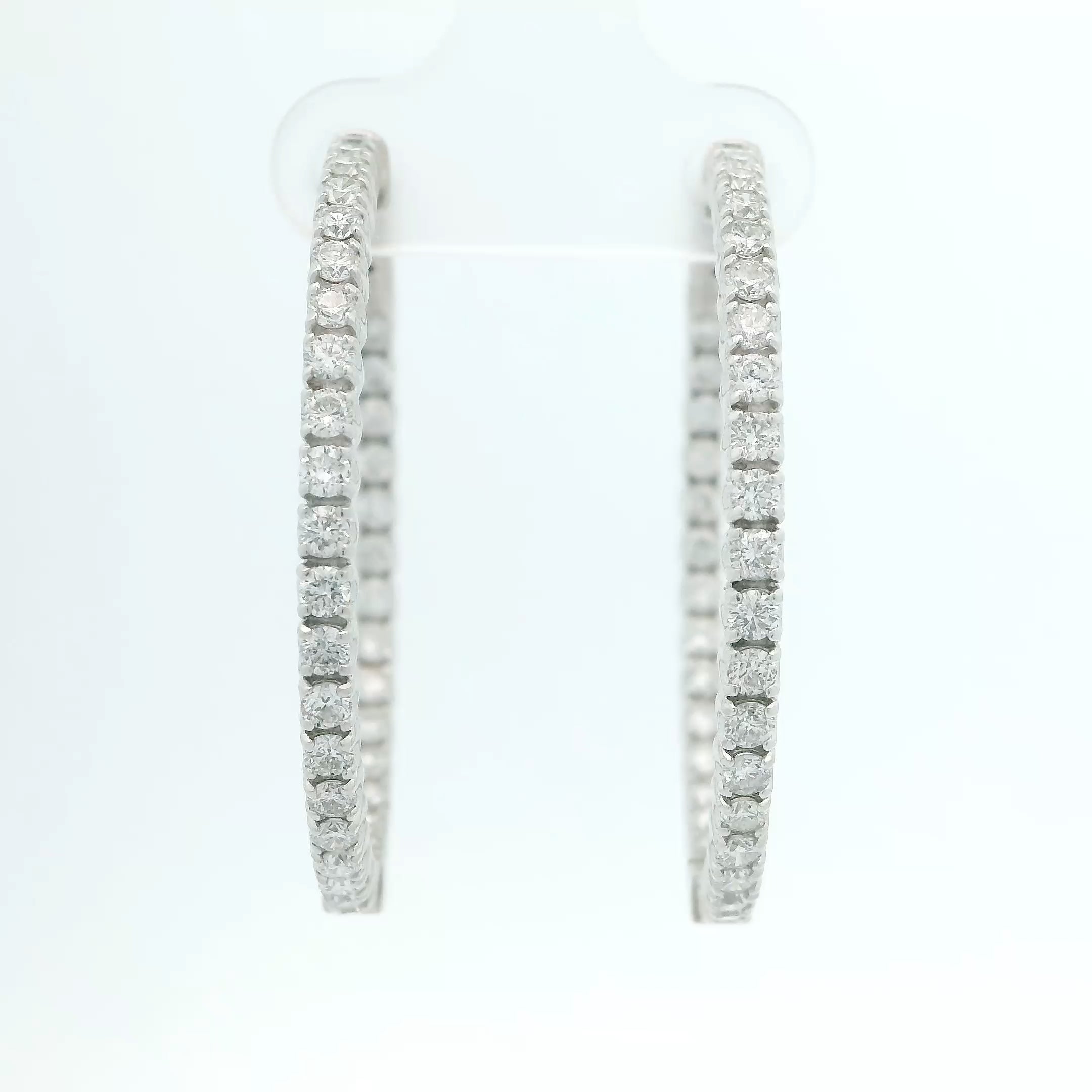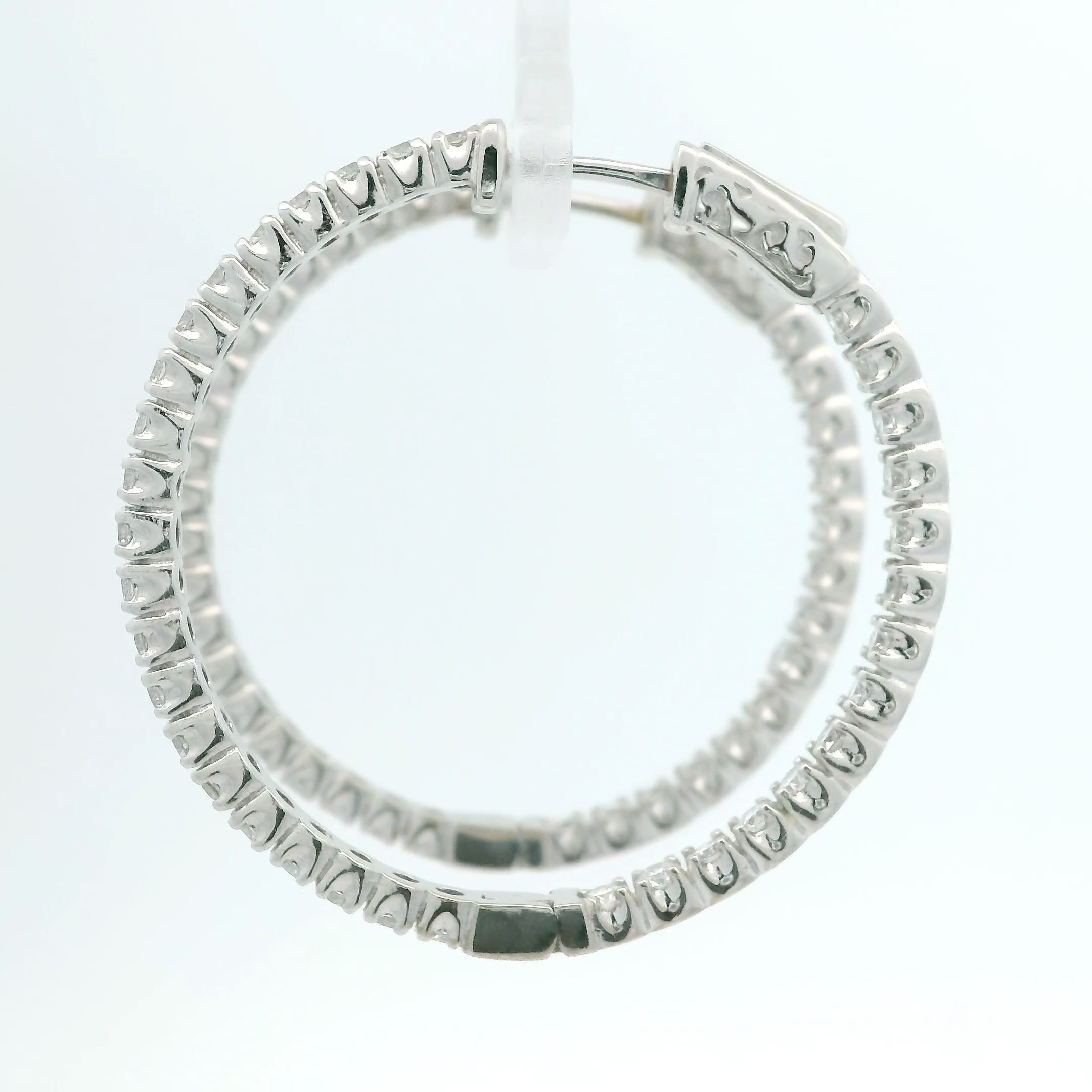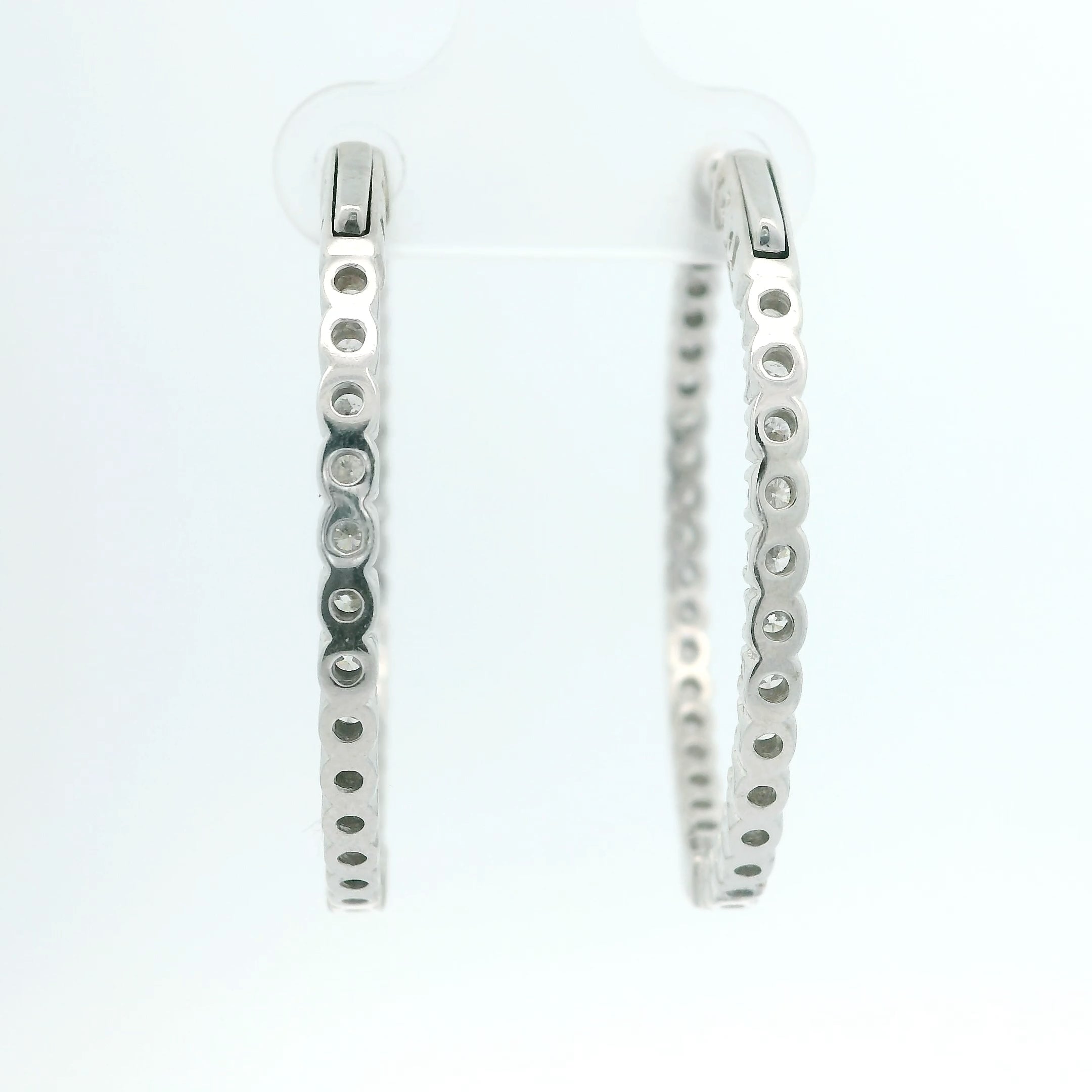 Crafted in 14k white gold, these inside-out diamond hoops showcase 2.10 carats of G/H color, VS2 clarity diamonds that maximize sparkle from every angle. Their elegant design offers timeless sophistication with exceptional brilliance. Perfect for adding subtle luxury to any ensemble.