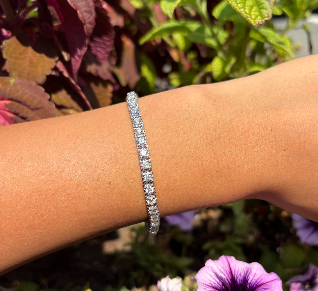 This elegant Diamond Line Bracelet features 5.00 carats of G/H color, SI1 clarity diamonds set in lustrous 14k white gold. Its refined design offers timeless sophistication, making it a perfect accessory for both everyday wear and special occasions. The high-quality craftsmanship ensures lasting beauty and brilliance.