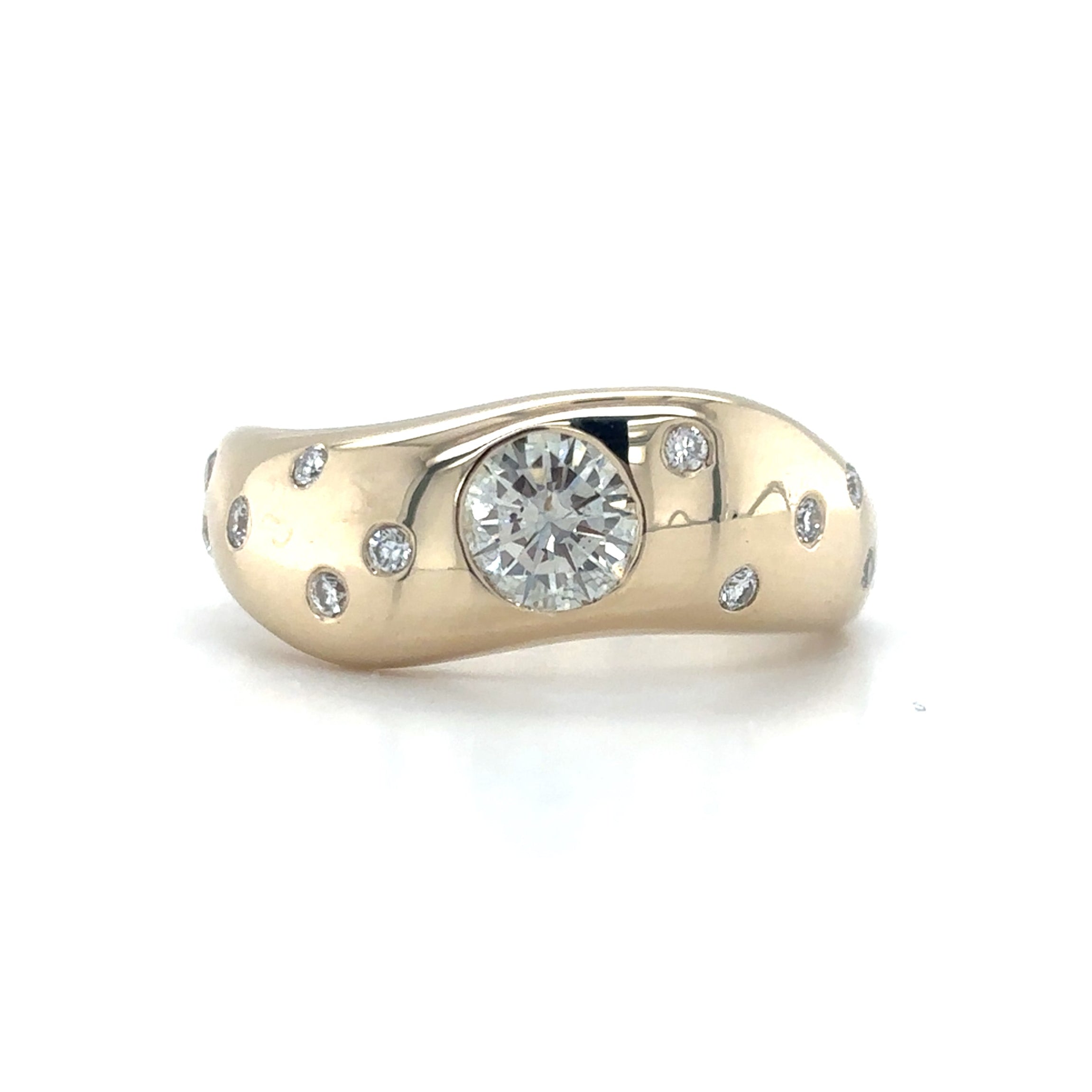 The white gold portion of this band was crafted from part our client’s original bracelet mounting. Our jeweler supplied the yellow gold shank and custom-made this ring using our client’s diamonds, creating a meaningful and sentimental piece.