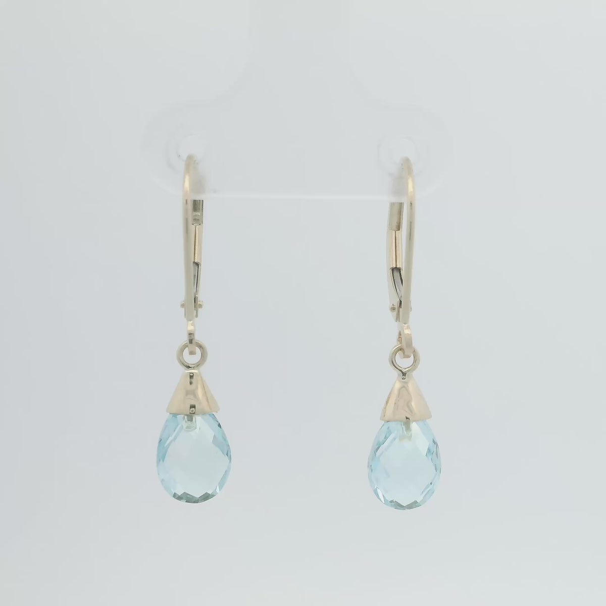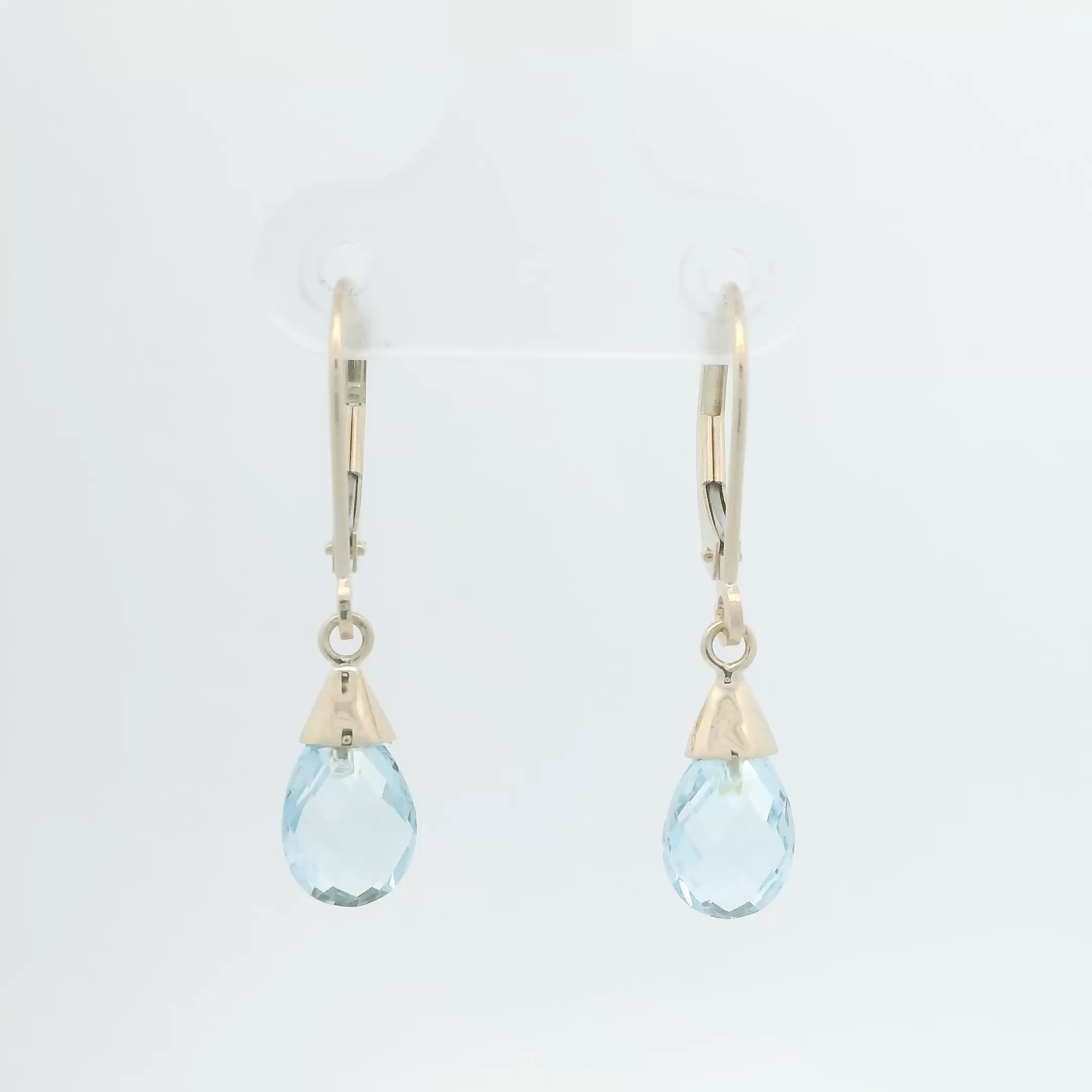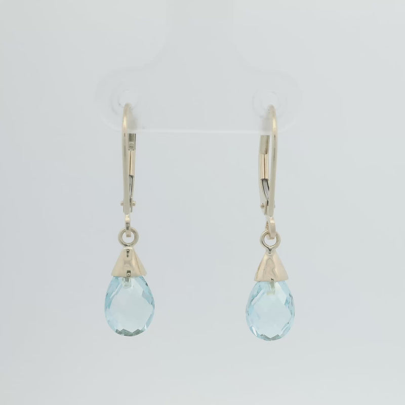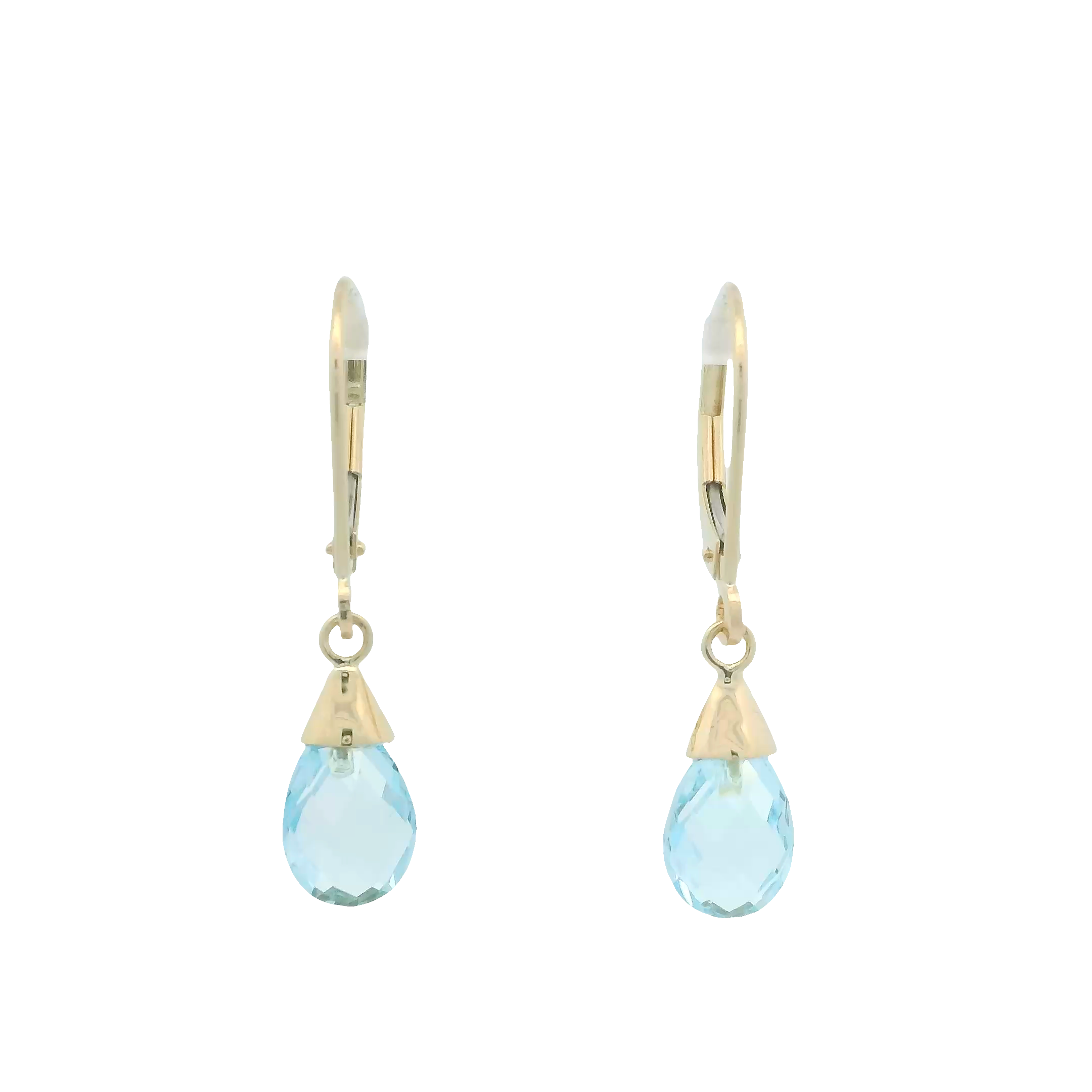 Blue Topaz Briolette Lever back Earrings crafted in 14k yellow gold offer timeless elegance with a contemporary edge. The stunning briolette-cut blue topaz stones catch light beautifully, displaying rich azure hues that complement any complexion. Secure lever back closures ensure these earrings stay in place throughout your day.