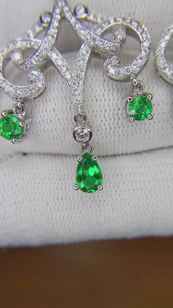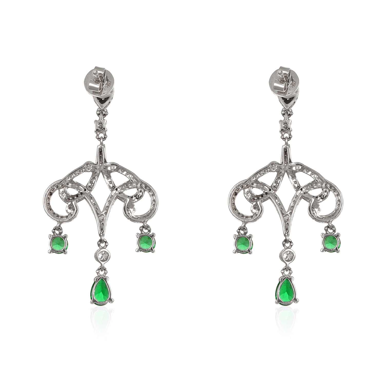 Elevate your style with our 18k white gold chandelier earrings. The one of a kind design features sparkling 1.35 carats of emeralds that will add a touch of luxury to any outfit. Treat yourself or someone special to these timeless and unique earrings.